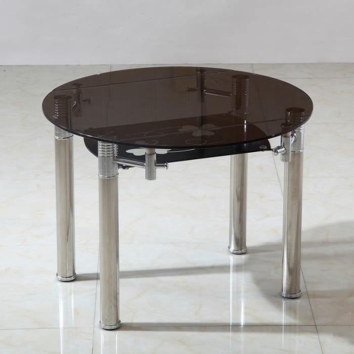 Designer Table Ronde Design Acier Noir Et Verre Trempe Gala 140